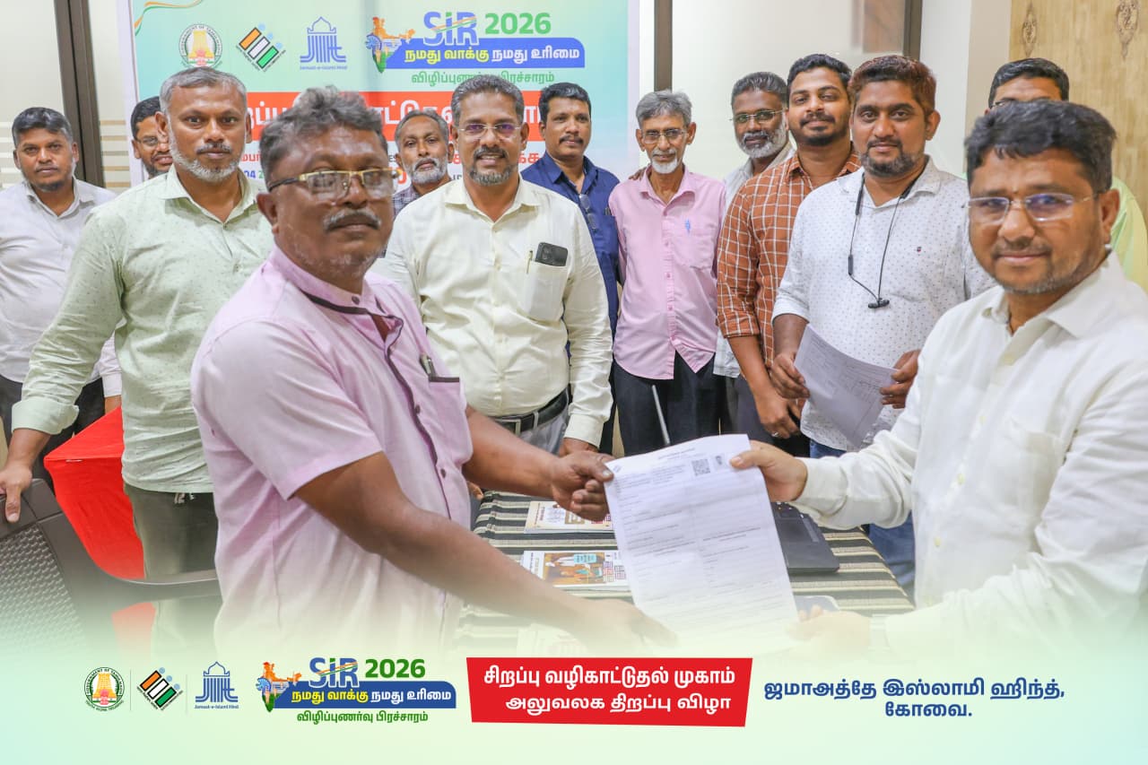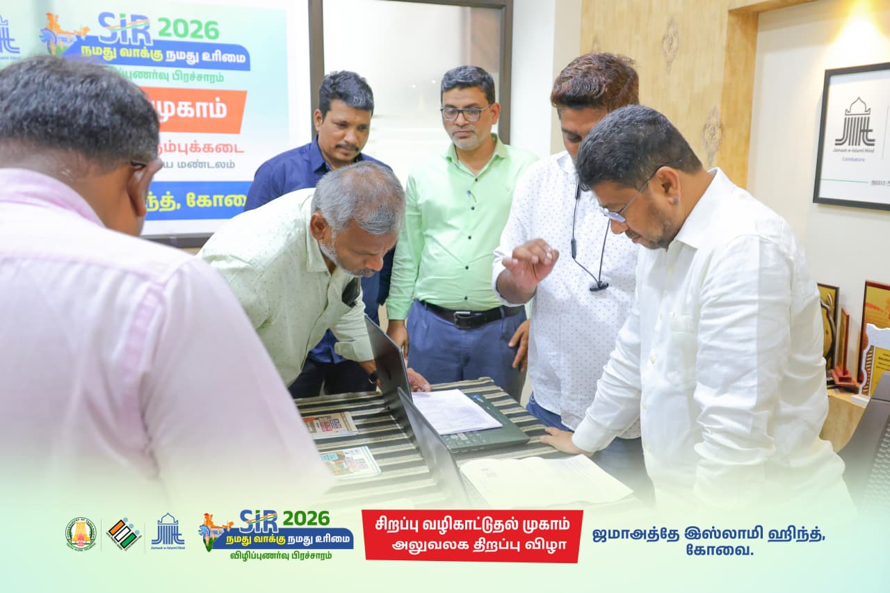 ஜமாஅத்தே இஸ்லாமி ஹிந்த், கோவை பெருநகரத்தின் சார்பாக SIR - தீவிர வாக்காளர் திருத்தத்தில் மக்களுக்கு SIR படிவங்களை நிரப்புதல் தொடர்பாக வழிகாட்டுதல் வழங்கிட விழிப்புணர்வு முகாம்கள் கோவையின் பல்வேறு பகுதிகளில் திறக்கப்படுகிறது.