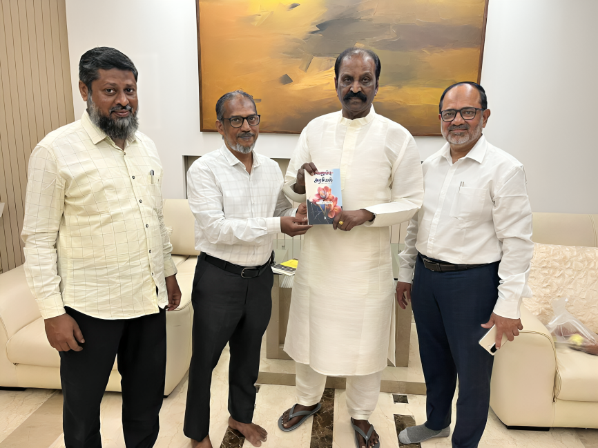 இலக்கிய உலகின் உயரிய விருதான ஞானபீட விருது பெற்ற கவிப்பேரரசு வைரமுத்து அவர்களை ஜமாஅத்தே இஸ்லாமி ஹிந்த் சார்பாக 25 மார்ச் 2026 அன்று சந்தித்து வாழ்த்துக்கள் தெரிவிக்கப்பட்டது.