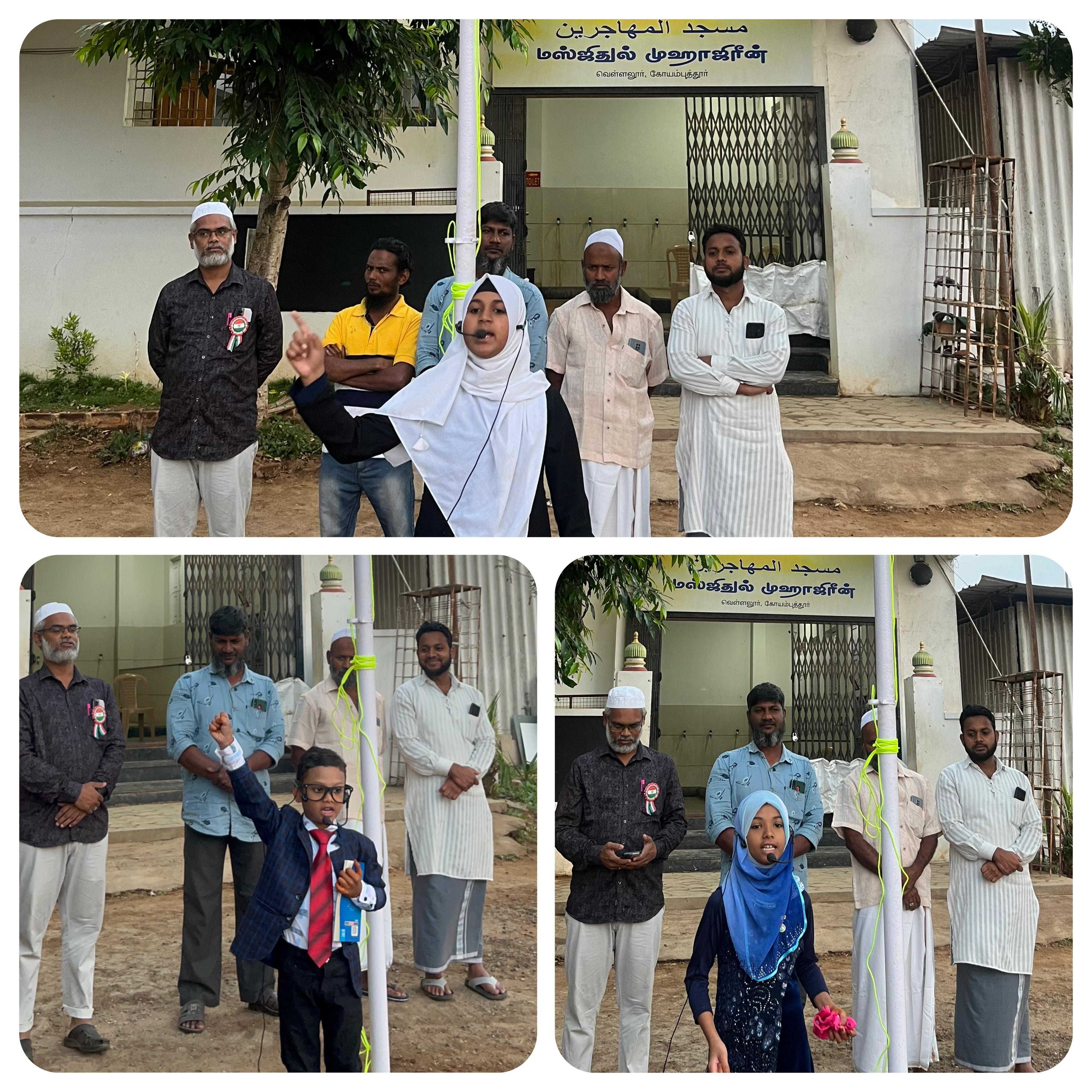 கோவை வெள்ளலூர் பகுதிவாழ் மக்கள் கலந்துகொண்ட இந்திய திருநாட்டின் 75 வது குடியரசு தின விழா கொண்டாட்டம் ஜமாஅத்தின் கிழக்கு மண்டல தலைவர் ஆசிரியர்  M.சலீம் அவர்கள் கொடியேற்றி வைத்து சிறப்புரை நிகழ்த்தினார்.