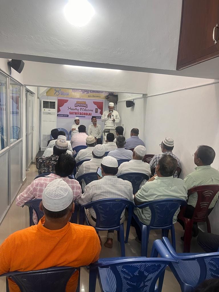 19.07.2023 புதன்கிழமை அன்று புதுப்பிக்கப்பட்ட சத்திய சோலை அலுவலகம் திறப்பு விழா நிகழ்ச்சி இனிதே நடைபெற்றது. இந்த நிகழ்ச்சியில் கும்பகோணத்தில் உள்ள முக்கியஸ்தர்கள், தொழிலதிபர்கள் வணிகர்கள் மற்றும் ஜமாத்தார்கள் அனைவரும் கலந்து கொண்டார்கள்